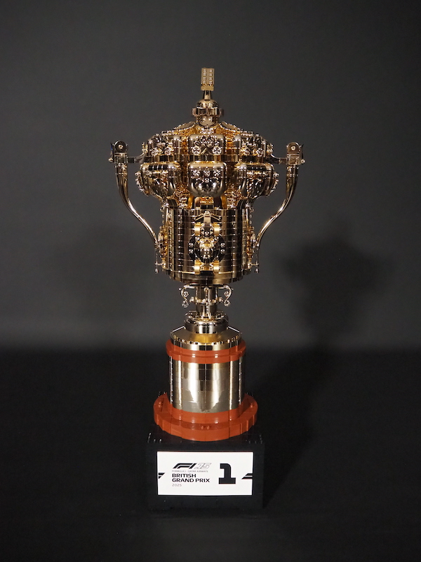 This is an exact replica of the British Grand Prix 2025 second place trophy. The trophy has been fully handcrafted from LEGO elements and built to replicate the original presentation piece used at the British Grand Prix.
