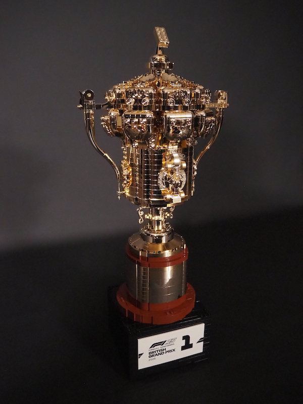 This is an exact replica of the British Grand Prix 2025 second place trophy. The trophy has been fully handcrafted from LEGO elements and built to replicate the original presentation piece used at the British Grand Prix.